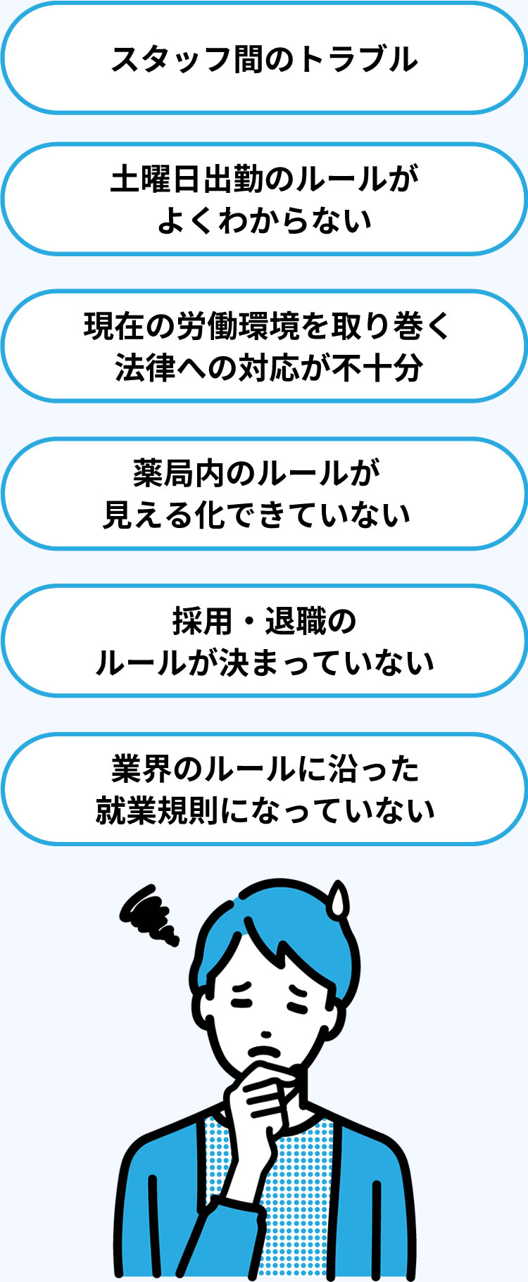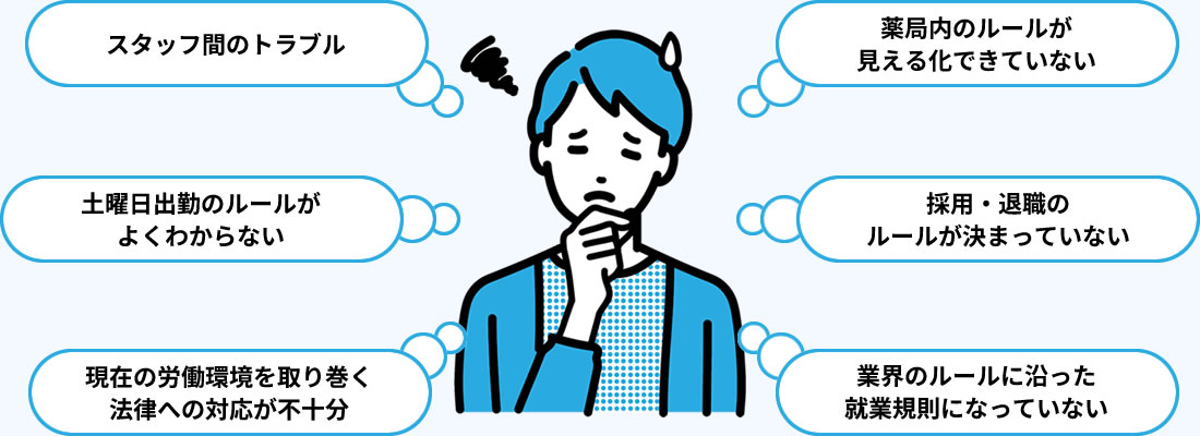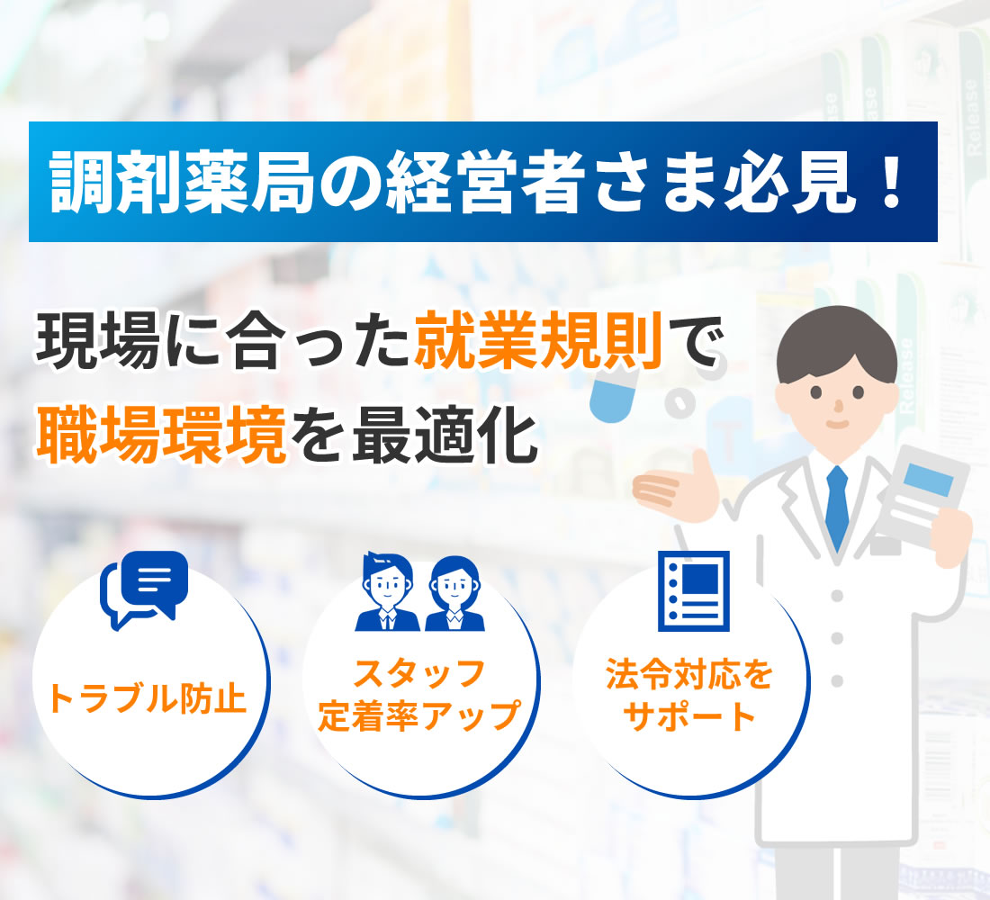 経験豊富な社労士が調剤薬局特有のルールに合った就業規則を作成します。